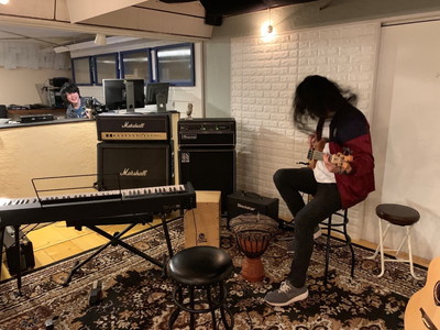さて、この日ものすごく気になっていたのが、こちらの楽器群である。練習にもライヴにも利用できるこのスペース、折角の機会なので演奏させていただくことにした。