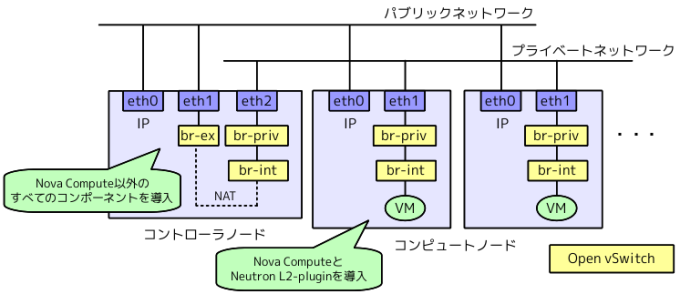 図1 Open vSwitchプラグインによるマルチノード構成例